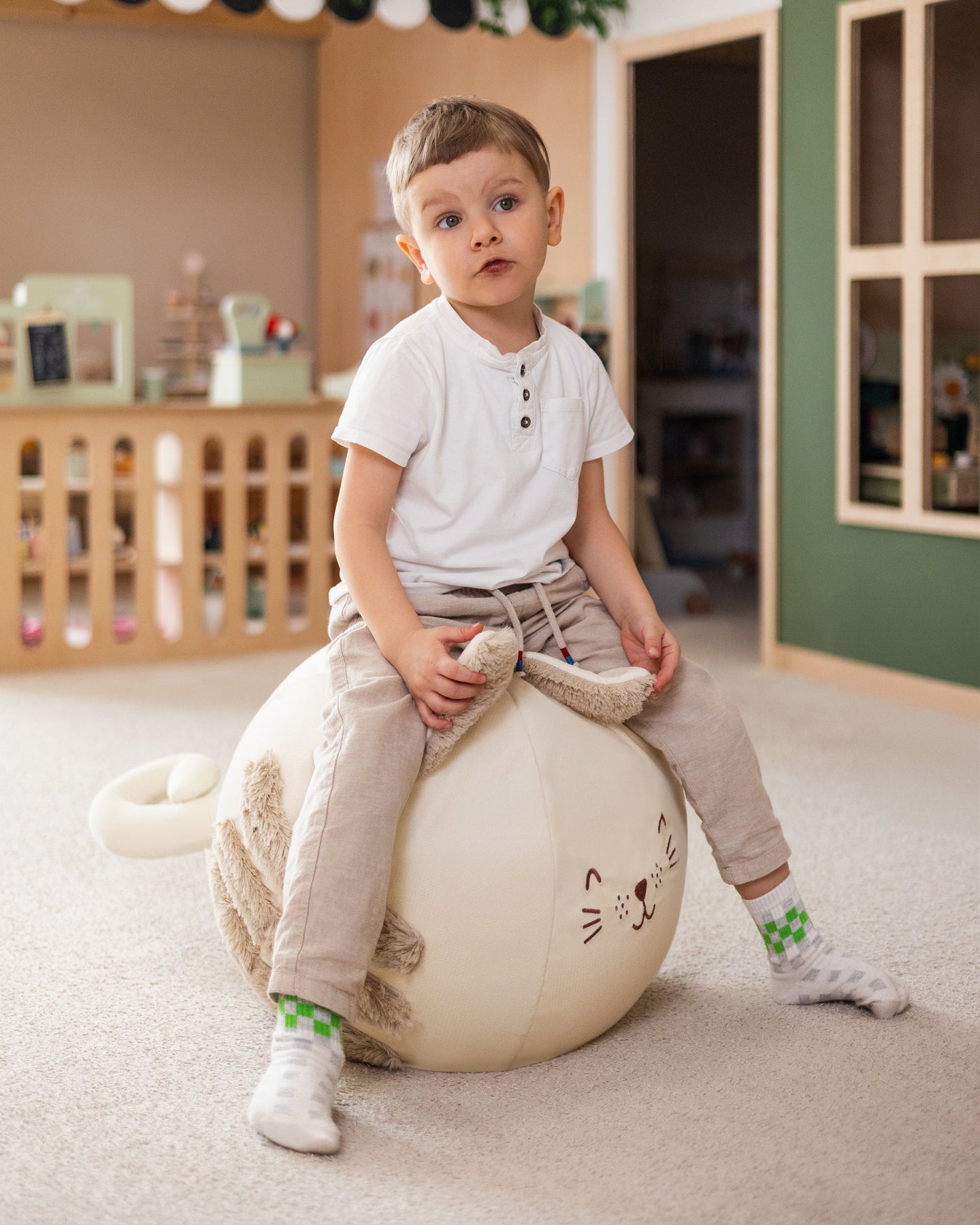 Krémový jako oblíbená deka. Měkká srst jako večerní kočičí mručení. Sametová kostkovaná struktura a nadýchaný bříško zvou k pomazlení mezi skoky. Tady můžeš snít o kočičích dobrodružstvích, o skocích k spatřeným pokladům, o tom, jaké to je být kočkou plnou rošťárny.