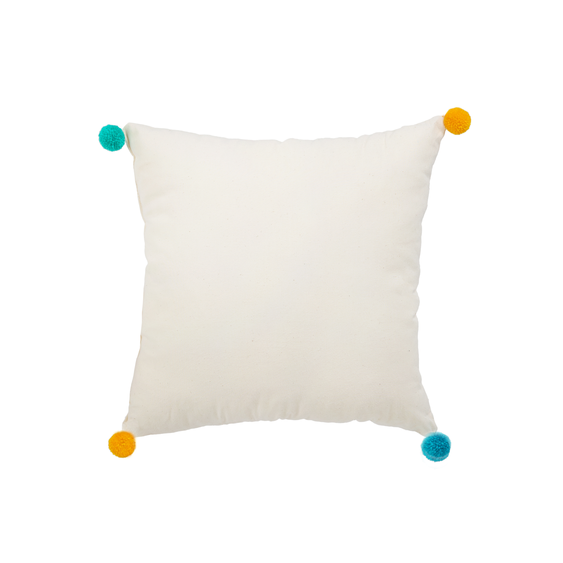 O pernă clasică, dar cu caracter. Cu pompoane în colțuri, de parcă fiecare colț ar avea propriul său gardian al culorilor. Simplă ca tot ce e bun – și colorată ca tot ce e copilăresc. 🌈✨